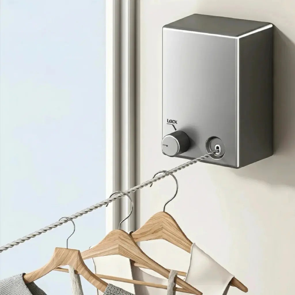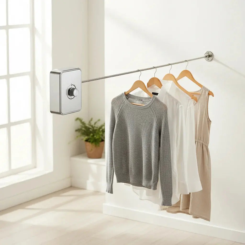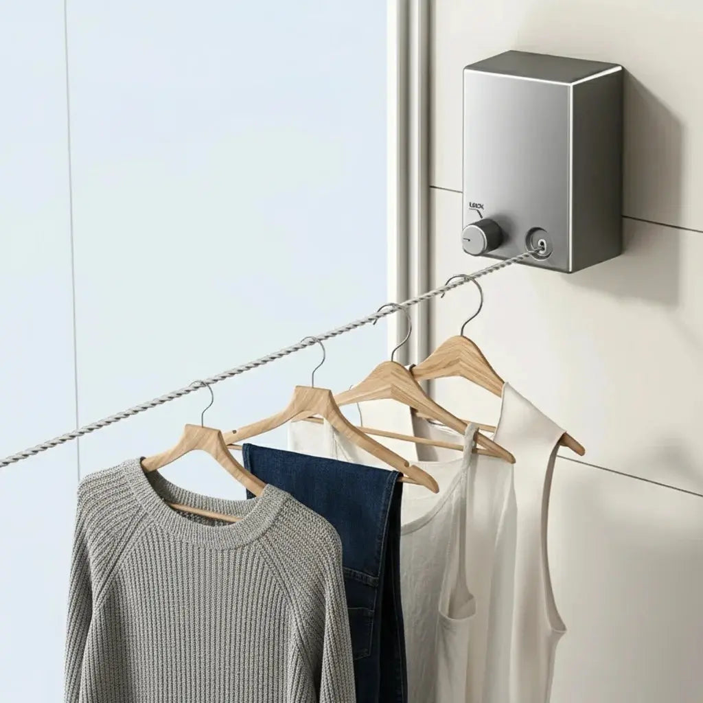 Tired of clothes racks eating your living room? This sleek, retractable line disappears when not in use, giving you back precious space and peace of mind.